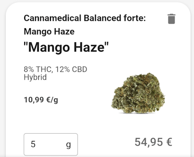 Eine Leiferung von Cannamedical Balanced forte Mango Haze und IMC Cannabisblüten THC 20 T01: Hindu Kush.